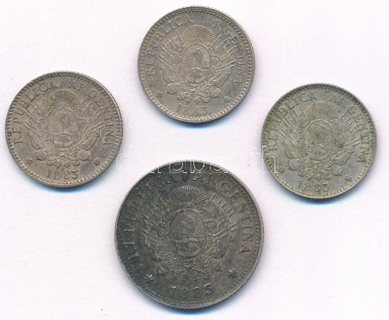 Argentína 1883. 20c Ag + 10c Ag (3x) T:2- patina Argentina 1883. 20 Centavos Ag + 10 Centavos Ag (3x) C:VF patina Krause KM#27, #26<a href="https://www.darabanth.com/hu/gyorsarveres/435/kategoriak~Numizmatika/Kulfoldi-fem-es-ezustpenzek~1500031/Arge