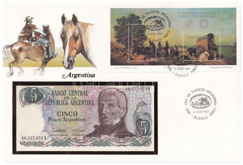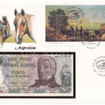Argentína 1983-1984. 5P felbélyegzett borítékban, bélyegzéssel T:I Argentina 1983-1984. 5 Pesos in envelope with stamp and cancellation C:UNC<a href="https://www.darabanth.com/hu/gyorsarveres/433/kategoriak~Numizmatika/Ermes-es-bankjegyes-boritekok