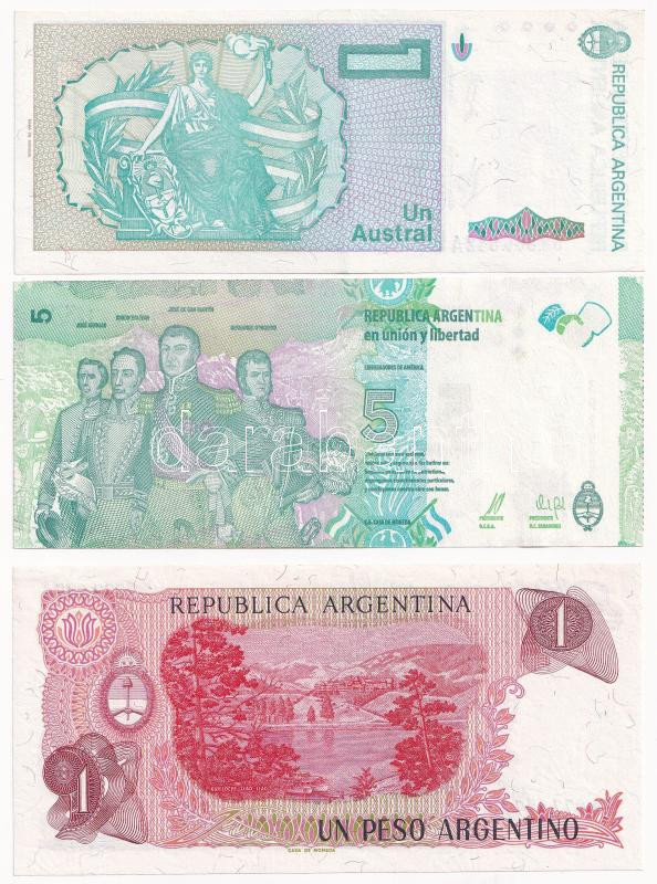 Argentína 1983. 1P + 1985-1986. 1A + 2015. 5P T:UNC-XF Argentina 1983. 1 Peso + 1985-1986. 1 Austral + 2015. 5 Pesos C:UNC-XF<a href="https://www.darabanth.com/hu/gyorsarveres/439/kategoriak~Numizmatika/Kulfoldi-bankjegyek~500013/Argentina-1983-1P-p