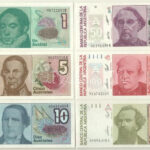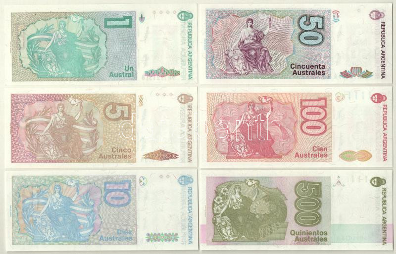 Argentína DN (1988-1989) 1A + 5A + 10A + 50A ‘ES, JLM’ + DN (1989-1990) 100A + DN (1990) 500A T:I,I- Argentina ND (1988-1989) 1 Austral + 5 Australes + 10 Australes + 50 Australes ‘ES, JLM’ + ND (1989-1990) 100 Australes + ND (1990) 500 Australes C:UNC,AU