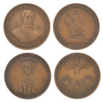 Asszonyi Tamás (1942-) 1973. ‘MÉE IV. Vándorgyűlése Budapest / Pest, Buda, Óbuda egyesítésének centenáriuma’ kétoldalas piedfort bronz emlékérem + Ligeti Erika (1934-2004) 1973. ‘MÉE 4. Vándorgyűlése – Esztergom / Visegrád’ kétoldalas piedfort bronz emlék