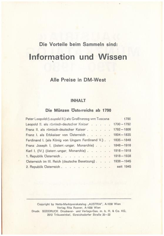 Austria Münzkatalog 1890-1980 (Ausztria érmekatalógusa 1790-1980 – német nyelvű). Szép állapot.