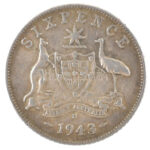 Ausztrália 1943D 6p Ag ‘VI. György’ T:XF patina Australia 1943D 6 Pence Ag ‘George VI’ C:XF patina<a href="https://www.darabanth.com/hu/gyorsarveres/438/kategoriak~Numizmatika/Kulfoldi-fem-es-ezustpenzek~1500014/Ausztralia-1943D-6p-Ag-VI-Gyorgy-TXF-