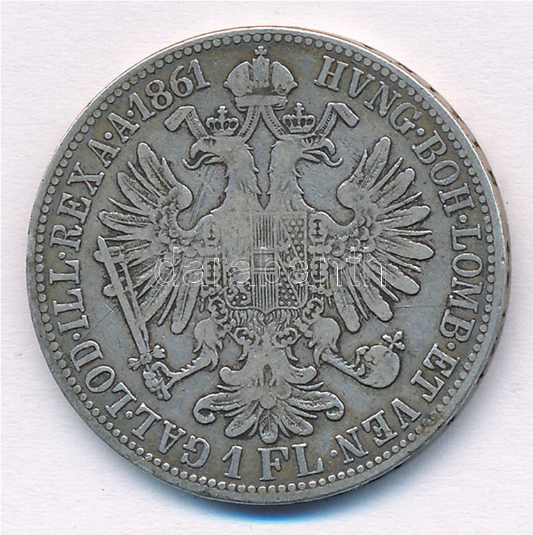 Ausztria 1861A 1Fl Ag ‘Ferenc József’ T:2- ph. Austria 1861A 1 Florin Ag ‘Franz Joseph’ C:VF edge error Krause KM#2219<a href="https://www.darabanth.com/hu/gyorsarveres/409/kategoriak~Numizmatika/Kulfoldi-fem-es-ezustpenzek~2500014/Ausztria-1861A-1F