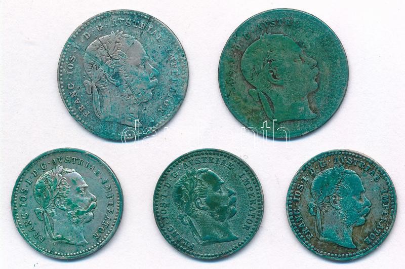 Ausztria 1869-1872. 10kr Ag (3xklf) + 1868-1869. 20kr Ag (2xklf) T:1–3 patina Ausztria 1869-1972. 10 Kreuzer Ag (3xdiff) + 1868-1869. 20 Kreuzer Ag (2xdiff) C:AU-F patina<a href="https://www.darabanth.com/hu/gyorsarveres/409/kategoriak~Numizmatika/