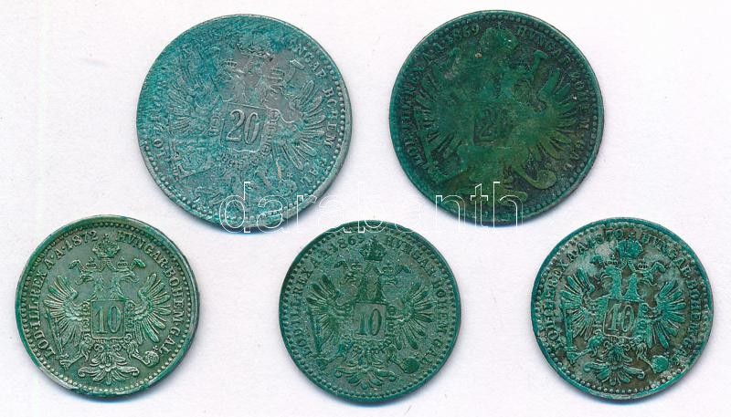Ausztria 1869-1872. 10kr Ag (3xklf) + 1868-1869. 20kr Ag (2xklf) T:1–3 patina Ausztria 1869-1972. 10 Kreuzer Ag (3xdiff) + 1868-1869. 20 Kreuzer Ag (2xdiff) C:AU-F patina