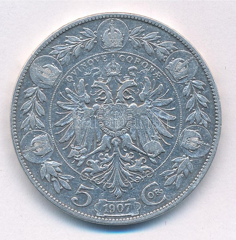 Ausztria 1907. 5K Ag ‘Ferenc József’ T:2,2- patina, karc Austria 1907. 5 Corona ‘Franz Joseph’ C:XF,VF patina, scratched Krause KM#2807