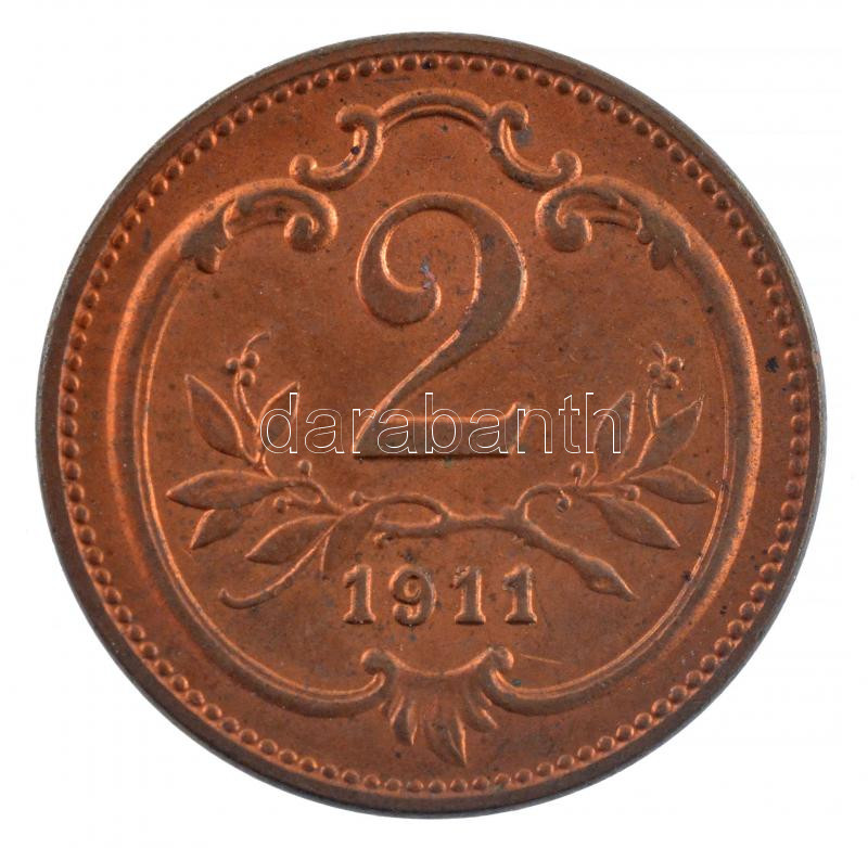 Ausztria 1911. 2h bronz műanyag kapszulában T:1- patina Austria 1911. 2 Heller bronze in plastic capsule C:AU patina Krause KM#2801