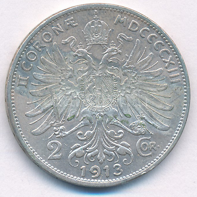 Ausztria 1913. 2K Ag ‘Ferenc József’ T:2,2- patina Austria 1913. 2 Corona Ag ‘Franz Joseph’ C:XF,VF patina Krause KM#2821
