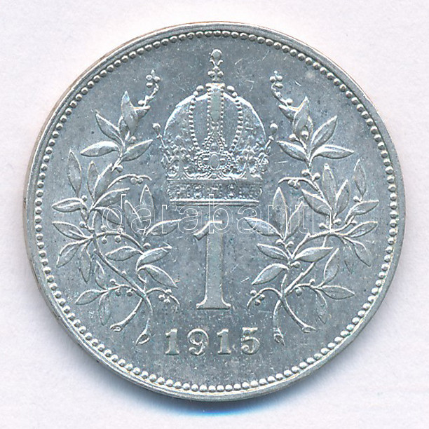 Ausztria 1915. 1K Ag ‘Ferenc József’ T:1- Austria 1915. 1 Corona Ag ‘Franz Joseph’ C:AU Krause KM# 2820<a href="https://www.darabanth.com/hu/gyorsarveres/436/kategoriak~Numizmatika/Kulfoldi-fem-es-ezustpenzek~2500002/Ausztria-1915-1K-Ag-Ferenc-Jozse