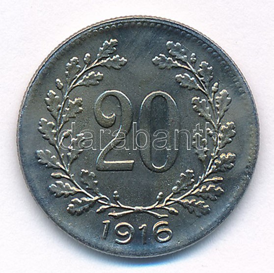 Ausztria 1916. 20h Fe T:2 Austria 1916. 20 Heller Fe C:XF Krause KM#2826<a href="https://www.darabanth.com/hu/gyorsarveres/416/kategoriak~Numizmatika/Kulfoldi-fem-es-ezustpenzek~1500013/Ausztria-1916-20h-Fe-T2-Austria-1916-20-Heller-Fe-CXF-Krause-KM