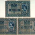 Ausztria 1919. (1902) 1000K (3x) függőleges ‘DEUTSCHÖSTERREICH’ felülbélyegzéssel, mindkét oldal német T:III kis szakadás Austria 1919. (1902) 1000 Kronen (3x) with vertical ‘DEUTSCHÖSTERREICH’ overprint, both sides in german C:F small