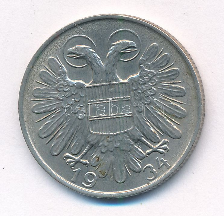 Ausztria 1934. 1Sch Cu-Ni T:2 Austria 1934. 1 Schilling Cu-Ni C:XF Krause KM#2581<a href="https://www.darabanth.com/hu/gyorsarveres/434/kategoriak~Numizmatika/Kulfoldi-fem-es-ezustpenzek~1500015/Ausztria-1934-1Sch-Cu-Ni-T2–Austria-1934-1-Schillin