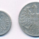 Ausztria 1946. 1Sch Al + 1951. 2gr Al T:2,2- patina, ph, Austria 1946. 1 Schilling Al + 1951. 2 Groschen Al C:XF,VF patina, edge error Krause KM#2871, #2876<a href="https://www.darabanth.com/hu/gyorsarveres/434/kategoriak~Numizmatika/Kulfoldi-fem-e