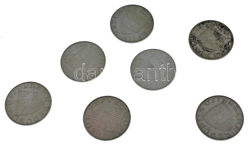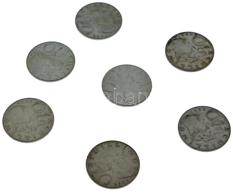 Ausztria 1957-1973. 10Sch Ag (7xklf) T:XF-F Austria 1957-1971. 10 Schilling Ag (7xdiff) C:XF-F Krause KM#2882<a href="https://www.darabanth.com/hu/gyorsarveres/438/kategoriak~Numizmatika/Kulfoldi-fem-es-ezustpenzek~1500014/Ausztria-1957-1973-10Sch-