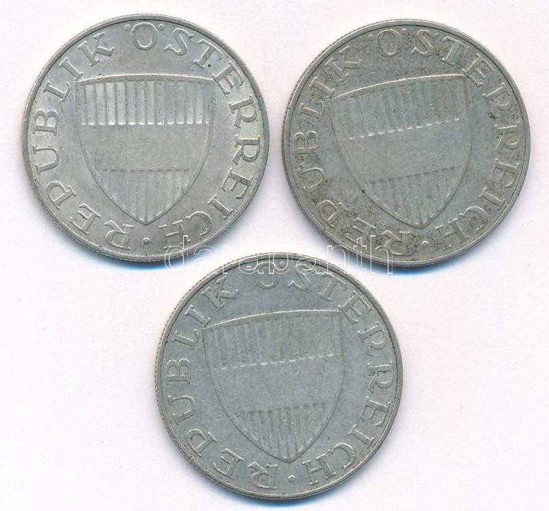 Ausztria 1958. 10Sch Ag (3x) T:2,2- Austria 1958. 10 Schilling Ag (3x) C:XF,VF Krause KM#2882<a href="https://www.darabanth.com/hu/gyorsarveres/424/kategoriak~Numizmatika/Kulfoldi-fem-es-ezustpenzek~1500017/Ausztria-1958-10Sch-Ag-3x-T2-2-Austria-195