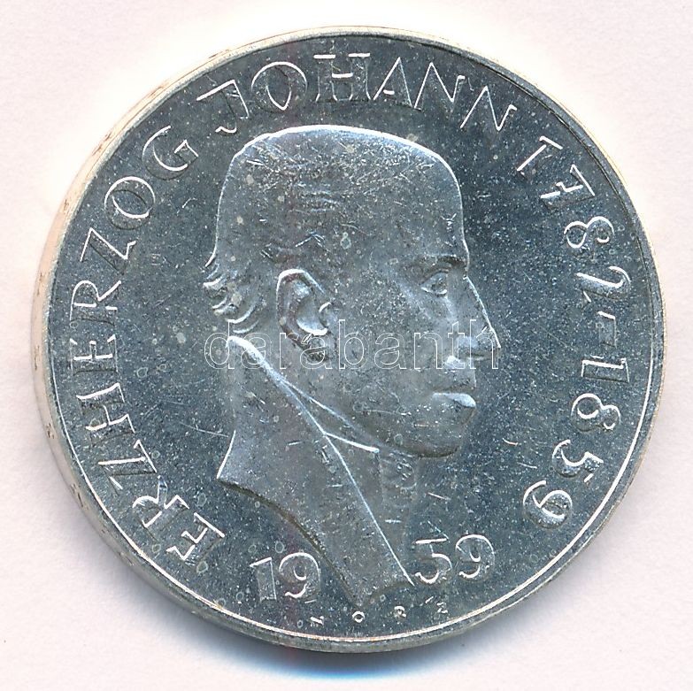 Ausztria 1959. 25Sch Ag ‘Johann főherceg’ T:1-,2 Austria 1959. 25 Schilling Ag ‘Archduke Johann’ C:AU,XF Krause KM#2887