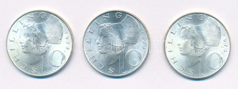 Ausztria 1973. 10Sch Ag (3x) T:AU,XF patina Austria 1973. 10 Schilling Ag (3x) C:AU,XF patina Krause KM#2882<a href="https://www.darabanth.com/hu/gyorsarveres/438/kategoriak~Numizmatika/Kulfoldi-fem-es-ezustpenzek~1500014/Ausztria-1973-10Sch-Ag-3x-T