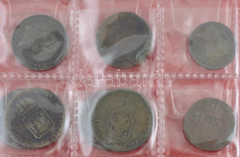 Ausztria 33db-os érme tétel a 18-19. századból, közte két darab Ag érme valamint Csehország / Történelmi tartomány 1762P 1kr Cu ‘Mária Terézia’, Magyarország 1864B 4kr Cu. Kisalakú berakóban T:vegyes Austria 33pcs of coins lot from the 18th and 19th centu