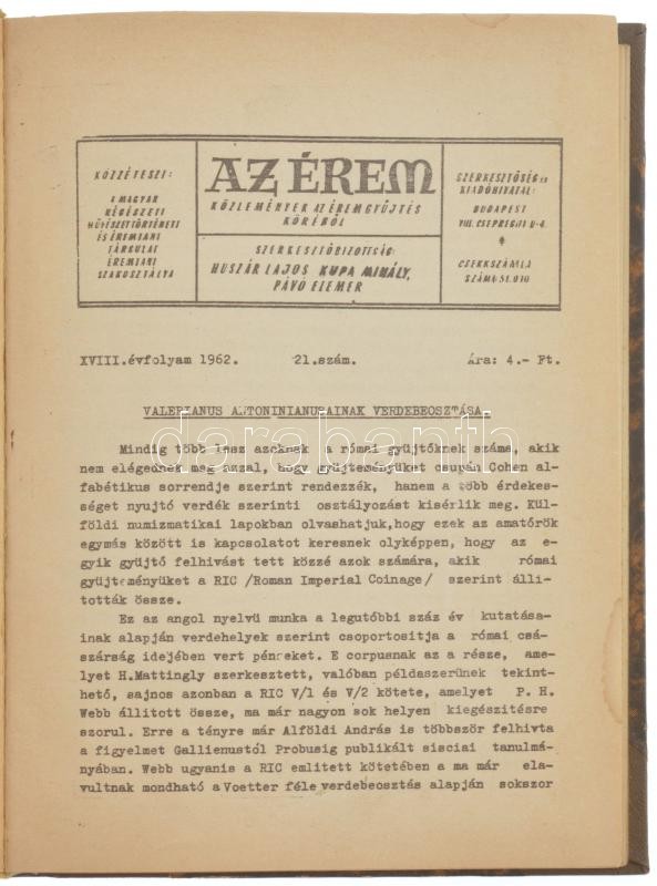 ‘Az Érem’ című folyóirat 1962-1967 közötti lapszámai egybekötve. Használt, de jó állapotban