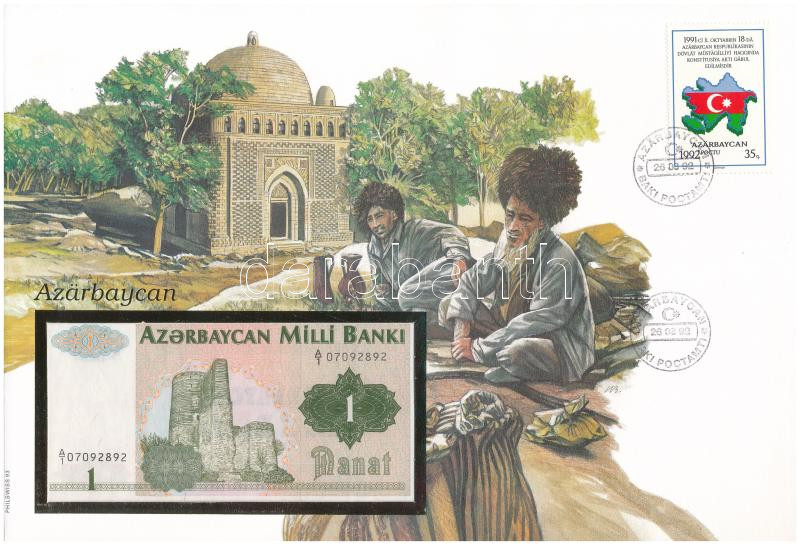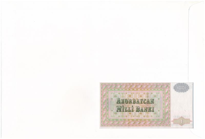 Azerbajdzsán 1992. 1M felbélyegzett borítékban, bélyegzéssel T:I Azerbaijan 1992. 1 Manat in envelope with stamp and cancellation C:UNC<a href="https://www.darabanth.com/hu/gyorsarveres/431/kategoriak~Numizmatika/Ermes-es-bankjegyes-boritekok~150000