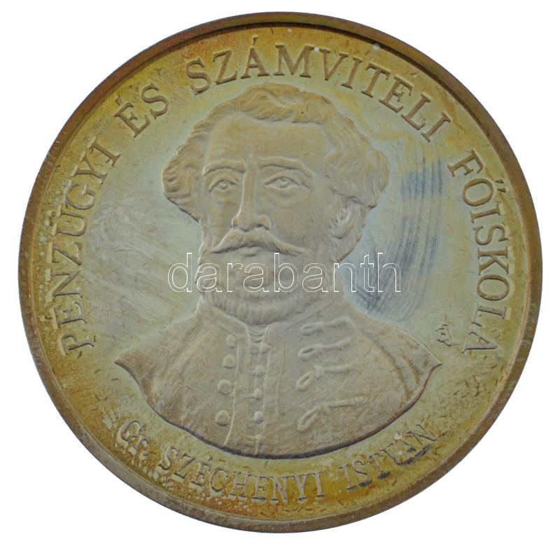 Bányai József (1933-2015) DN ‘Pénzügyi és Számviteli Főiskola (PSZF) / Gr. Széchenyi István’ jelzett Ag emlékérem, műanyag dísztokban (31,25g/0.925/42,5mm) T:2 ujjlenyomat, patina, karc<a href="https://www.darabanth.com/hu/gyorsarveres/438/kategoria