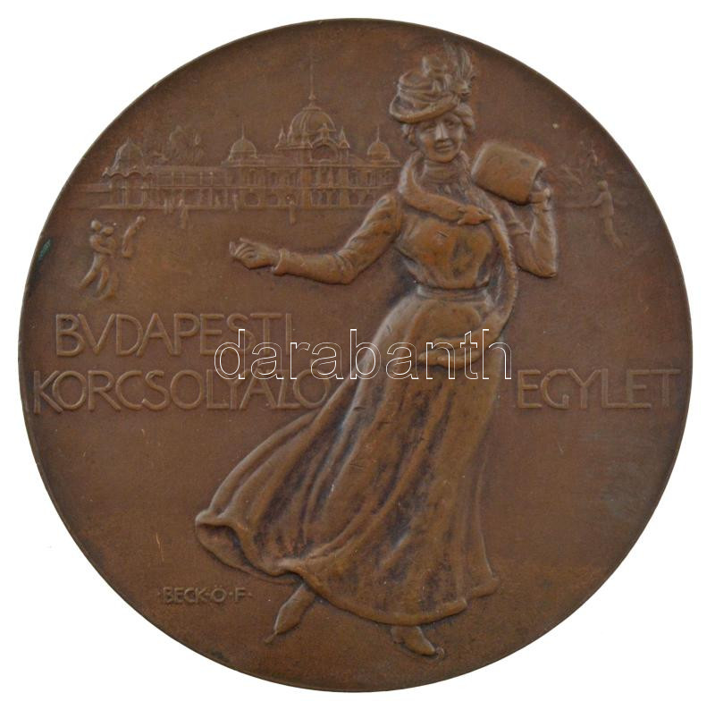 Beck Ö. Fülöp (1873-1945) ~1900. ‘Budapesti Korcsolyázó Egylet’ egyoldalas bronz emlékérem (70mm) T:1- patina<a href="https://www.darabanth.com/hu/gyorsarveres/432/kategoriak~Numizmatika/Sportdijak-es-sport-emlekermek~1500011/Beck-O-Fulop-1873-1945-