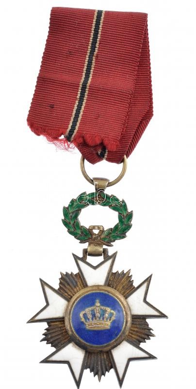Belgium 1897. ‘Koronarend Lovagkeresztje’ jelzetlen zománcozott kitüntetés nem eredeti mellszalagon T:2,2- patina, zománchiba, foszladozó szalag Belgium 1897. ‘Order of the Crown, Knight’ enamelled decoration without hallmark on not original ribbon C:XF,V
