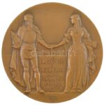 Berán Lajos (1882-1943) 1931. ‘CIVITAS METROPOLITANA BUDAPEST HOSPITIBUS ET AMICIS S D / AZ IFJÚ SZÉP PEST KI BIZTON ÖLELVE NYÚJT CORVIN AGG VÁRÁNAK HŰ KEZET ‘ kétoldalas Br emlékérem (70,5mm) T:1- patina, kis ph<a href="https://www.darabanth.com/hu