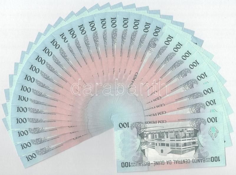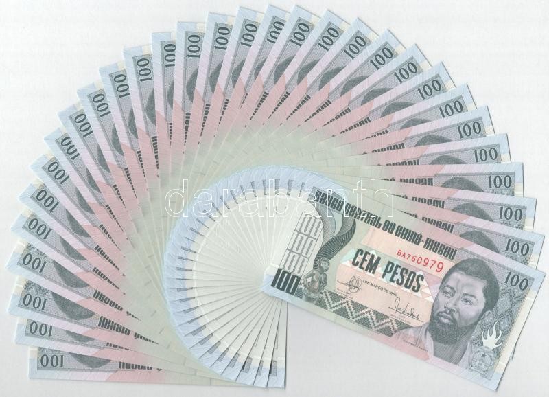 Bissau-Guinea 1990. 100P (30x, közte sorszámkövetők) T:I Bissau-Guinea 1990. 100 Pesos (30x, within consecutive serials) C:UNC Krause P#44<a href="https://www.darabanth.com/hu/gyorsarveres/418/kategoriak~Numizmatika/Kulfoldi-bankjegyek~2000014/Bissa