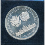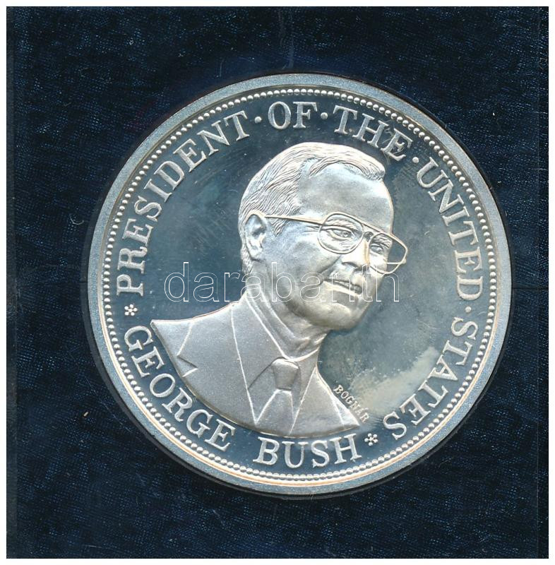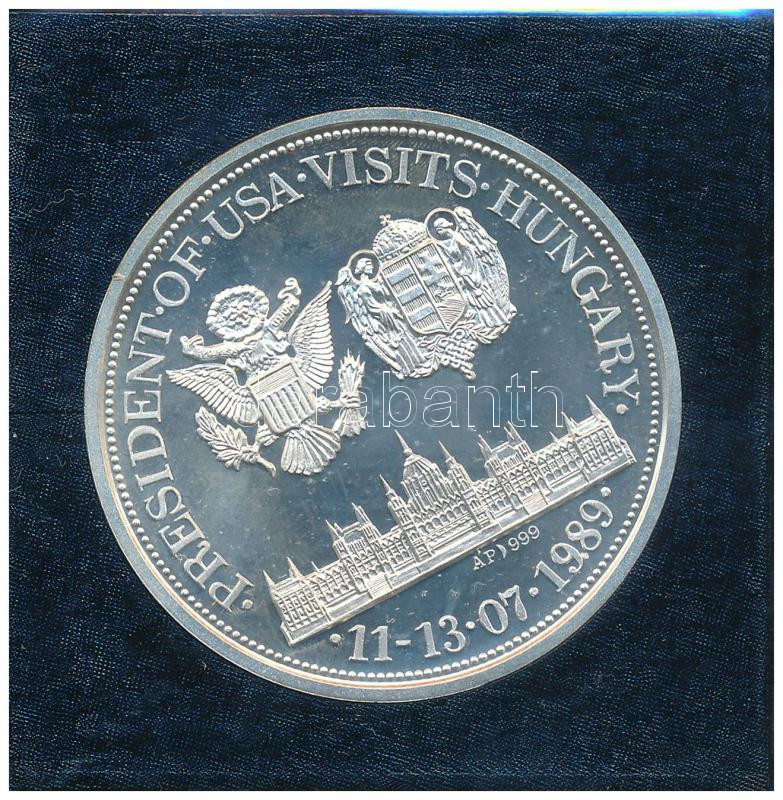 Bognár György (1944-) 1989. ‘Az Amerikai Egyesült Államok elnöke George Bush / Az USA elnökének magyarországi látogatása 1989. július 11-13’ Ag emlékérem sérült eredeti tokban (31,34g/0.999/42,5mm) T:1- (PP) fo. Hungary 1989.