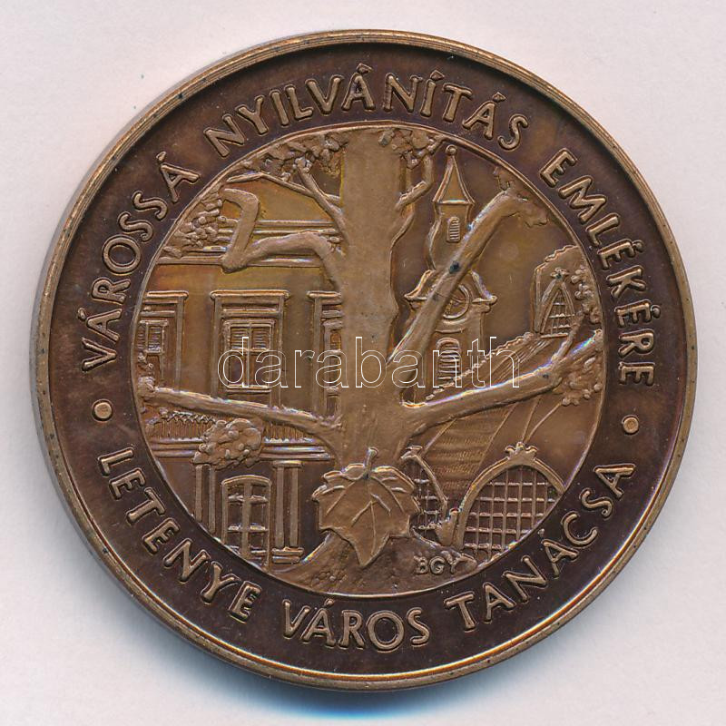 Bognár György (1944-) 1989. ‘Letenye / Várossá nyilvánítás emlékére – Letenye város tanácsa’ kétoldalas bronz emlékérem (42,5mm) T:1 kis patina<a href="https://www.darabanth.com/hu/gyorsarveres/436/kategoriak~Numizmatika/Magyar-emlekveretek-plakette