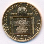 Bognár György (1944-) 1991. ‘MÉE – Ferencvárosi Torna Club FTC II. – 1909-1919’ fényezett, kétoldalas Br emlékérem kapszulában (23mm) T:2