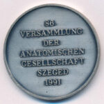 Bognár György (1944-) 1991. ‘Szent-Györgyi Albert Orvostudományi Egyetem Szeged / 86. Versammlung der Anatomischen Gesellschaft (Az Anatómiai Társaság 86. gyűlése) Szeged 1991’ kétoldalas, ezüstpatinázott bronz emlékérem (42,5mm) T:1- kopott ezüstözés<br