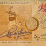 Bognár György (1944-) 1996. „Puskás Ferenc / Az évszázad gólkirálya” Ag emlékérem (12,1g/0.999/30mm) sorszámozott „00312” bélyeges borítékon, Puskás Ferenc saját kezű aláírásával T:PP kis patina / Hungary 1996. „Puskás Ferenc / Az évszázad gólkirálya (Fer