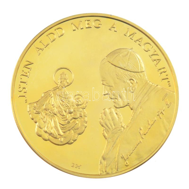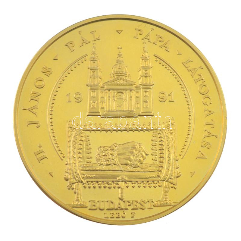 Bognár György (1944-) / Lebó Ferenc (1960-) 1991. ‘II. János Pál pápa látogatása – Budapest’ kétoldalas aranyozott fém emlékérem (42,5mm) T:PP fo.<a href="https://www.darabanth.com/hu/gyorsarveres/438/kategoriak~Numizmatika/Magyar-emlekveretek-plake