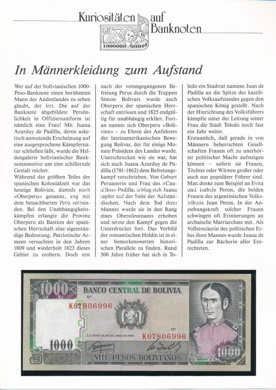 Bolívia 1982. 1000P német leírással T:I Bolivia 1982. 1000 Pesos with german description C:UNC Krause P#167a
