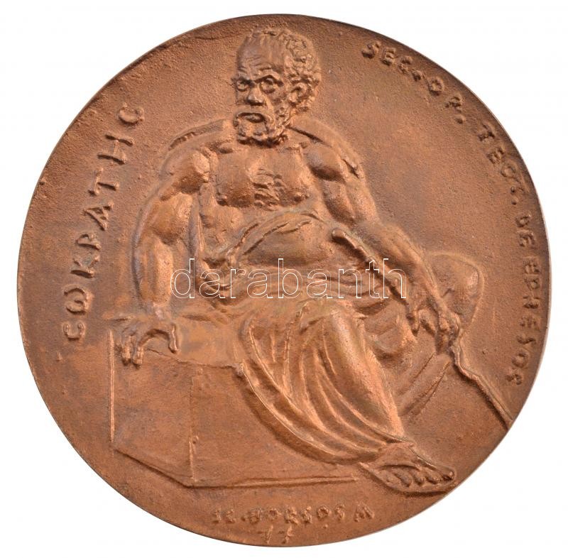 Borsos Miklós (1906-1990) 1977. ‘Szokratész – SEC. OP. TEC. DE EPHESOS’ egyoldalas, öntött bronz emlékérem (114mm) T:1- / Hungary 1977. ‘Szokratész – SEC. OP. TEC. DE EPHESOS’ one-sided, cast bronze commemorative medallion. Sign.: Miklós Borsos (114mm) C: