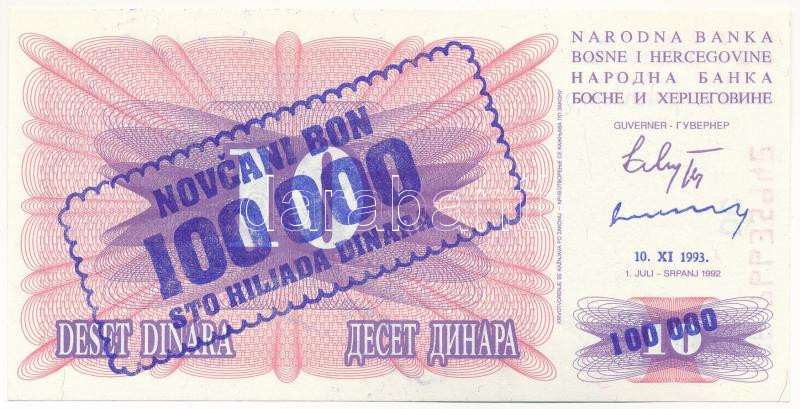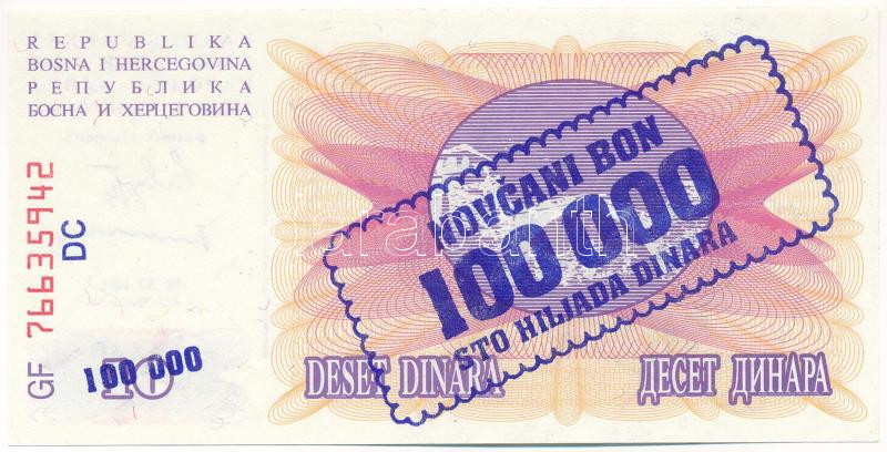 Bosznia-Hercegovina 1993. 100.000D T:I Bosnia and Hercegovina 1993. 100.000 Dinara C:UNC Krause P#34<a href="https://www.darabanth.com/hu/gyorsarveres/432/kategoriak~Numizmatika/Kulfoldi-bankjegyek~1500014/Bosznia-Hercegovina-1993-100000D-TI-Bosnia-