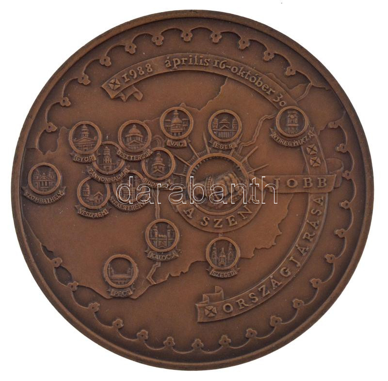 Bozó Gyula (1913-2004) 1988. ‘A Szent Jobb országjárása / Szent István királyunk halálának 950. évfordulója emlékére’ kétoldalas bronz emlékérem (70mm) T:1-<a href="https://www.darabanth.com/hu/gyorsarveres/438/kategoriak~Numizmatika/Magyar-emlekver