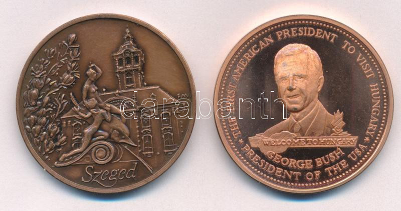 Bozó Gyula (1913-2004) 1989. ‘George Bush látogatása Magyarországon’ bronz emlékérem (42,5mm) + Fritz Mihály (1947-) 1991. ‘Szeged Dermatology Days (Szegedi dermatológiai napok)’ kétoldalas bronz emlékérem (42mm) T:1- (eredetileg PP),1-<a href="http