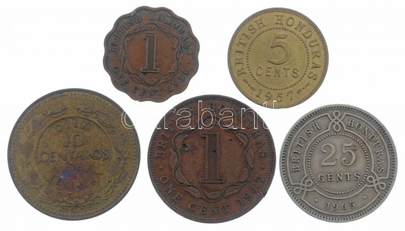 Brit Honduras 1947. 1c Cu ‘VI. György’ + 1956-1965. 1c-25c ‘II. Erzsébet’ (3xklf) + Honduras 1994. 10c sárgaréz T:2-3 British Honduras 1947. 1 Cent Cu ‘George VI’ + 1956-1965. 1 Cent – 25 Cents ‘Elizabeth II’ (3xdiff) + Honduras 1994. 10 Cents