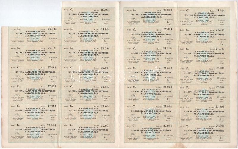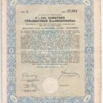 Budapest 1914. ‘Budapest Székesfőváros – Kötelezvény’ 2400K-ról szelvényekkel, bélyegzéssekkel, igazolással + 1942. ‘A Magyar Királyság 3%-kal Kamatozó Törlesztéses Államadóssága’ kötvénye 100P-ről szárazpecséttel és szelvényekkel + 1946. ‘Magyar Czukorip