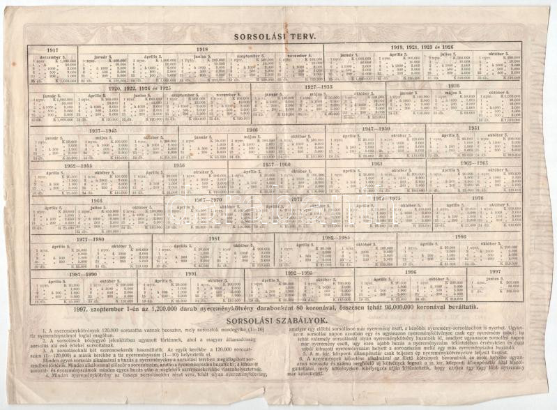 Budapest 1917. ‘Hadsegítési és Népjóléti nyereménykölcsön’ nyereménykötvény 40K-ról, szárazpecséttel (6x) T:II- közte szakadások, pecsét, firka<a href="https://www.darabanth.com/hu/gyorsarveres/436/kategoriak~Numizmatika/Reszvenyek-es-sorsjegyek~150