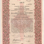 Budapest 1918. ‘A Magyar Korona Országai 5 1/2%-kal kamatozó járadékkölcsön’ államadóssági kötvénye 1000K-ról (2x) sorszámkövetők ‘C 196.958 – C 196.959’ szelvényekkel, bélyegzéssel, szárazpecséttel T:VF folt<a href="https://www.darabanth.com/hu/gyo