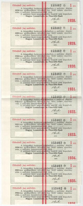 Budapest 1926. ‘A Magyar Leszámítoló- és Pénzváltó-Bank’ ideiglenes részvénye 50P-ről, szelvényekkel, szárazpecséttel, bélyegzésekkel T:F
