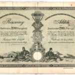 Budapest 1926. ‘Magyar Általános Kőszénbánya Részvénytársulat’ részvénye 200P-ről, magyar és német nyelven, szelvényekkel, bélyegzésekkel, szárazpecséttel T:F ragasztott<a href="https://www.darabanth.com/hu/gyorsarveres/440/kategoriak~Numizmatika/Re