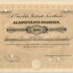 Budapest 1929. ‘A Gazdák Biztosító Szövetkezete’ névre szóló alapítványi okirata 200K-ról, szelvényekkel, szárazpecséttel, lyukasztásokkal érvénytelenítve T:I-