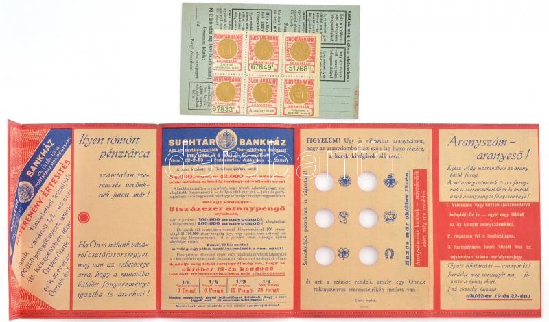 Budapest ~1935. ‘Suchtár Bankház – 35. osztálysorsjáték’ kihajtható sorsjegy reklám felbélyegzett levelezőlappal T:I- / Hungary / Budapest ~1935. ‘Suchtár Bank House – 35. Class Lottery Game’ lottery ticket advertisement with postcard and