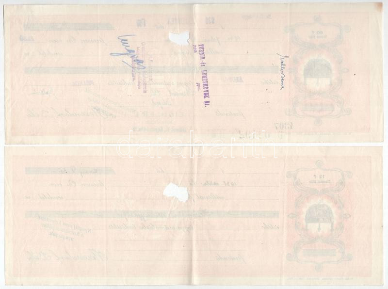 Budapest 1938-1940. 9db-os kitöltött és kitöltetlen váltó tétel vízjeles papíron T:VF,F anyaghiány<a href="https://www.darabanth.com/hu/gyorsarveres/438/kategoriak~Numizmatika/Papir-es-fem-szuksegpenzek~1500006/Budapest-1938-1940-9db-os-kitoltott-es